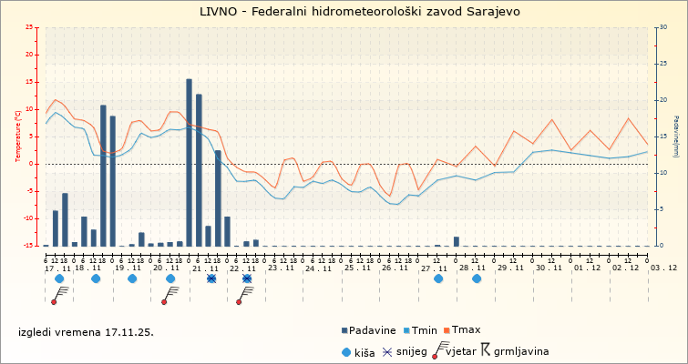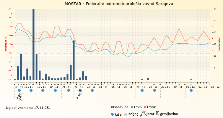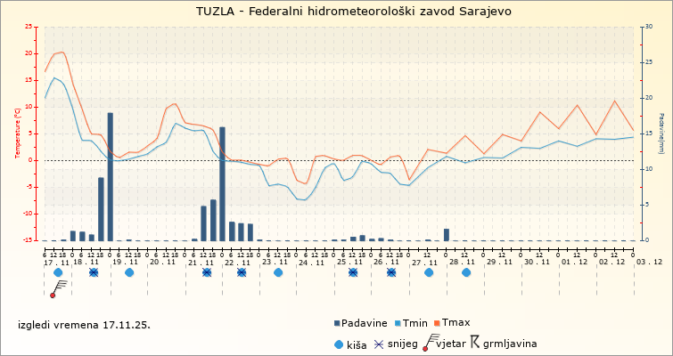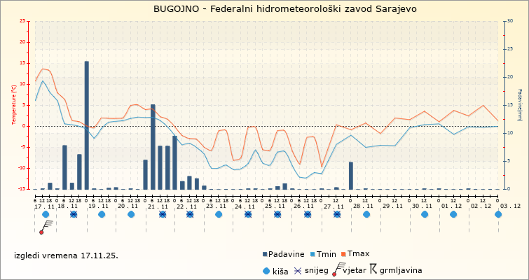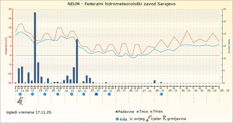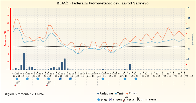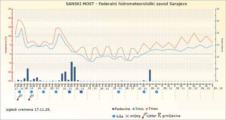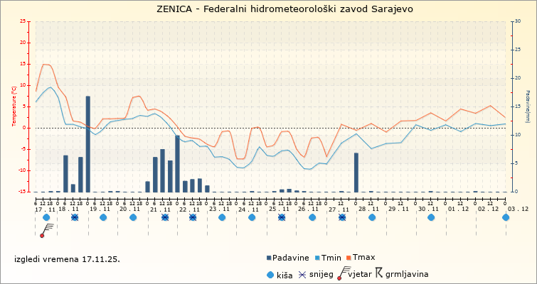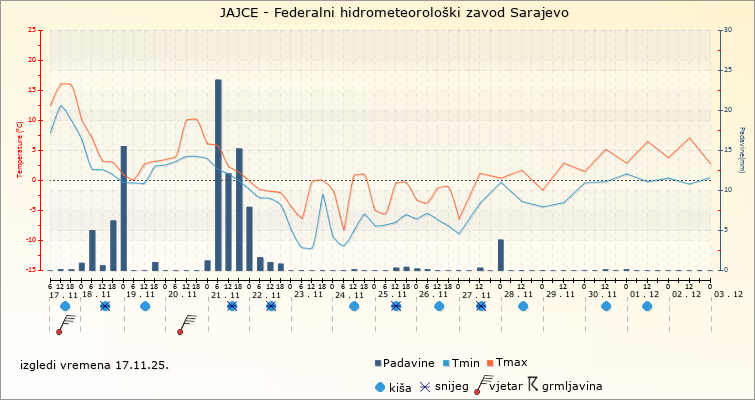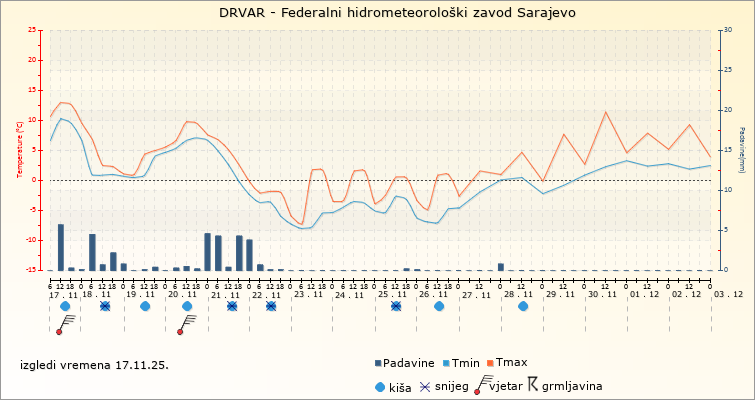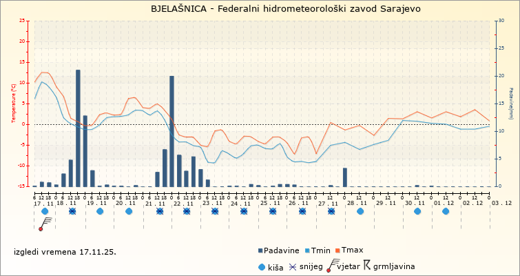 IZGLEDI VREMENA ZA SARAJEVO ZA PERIOD: od 17.11.2025. do 2.12.2025.