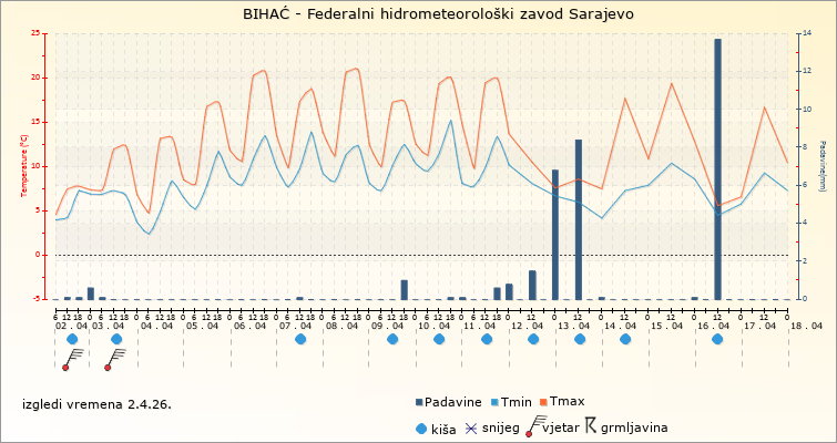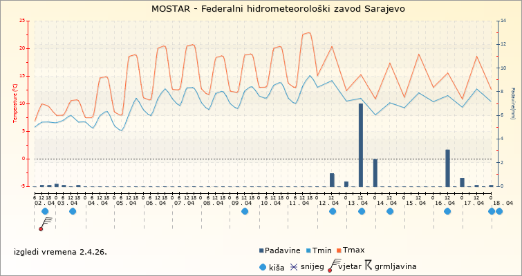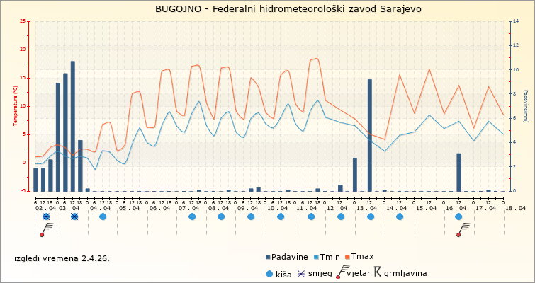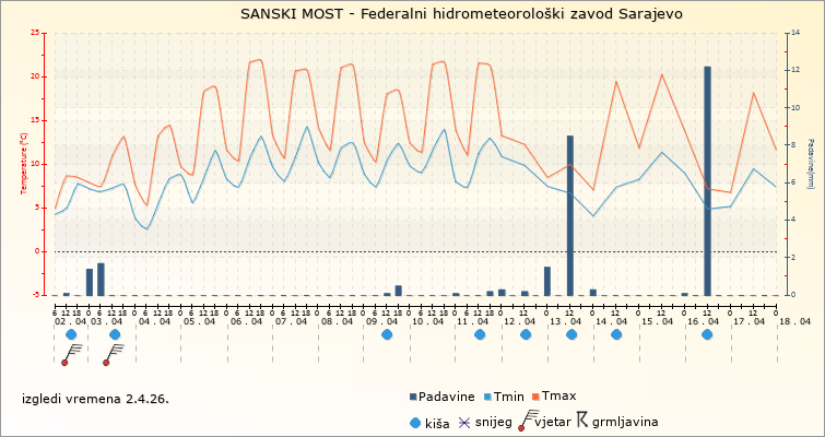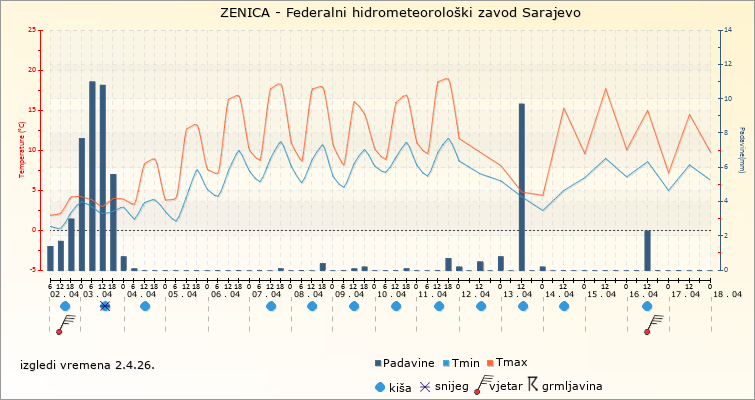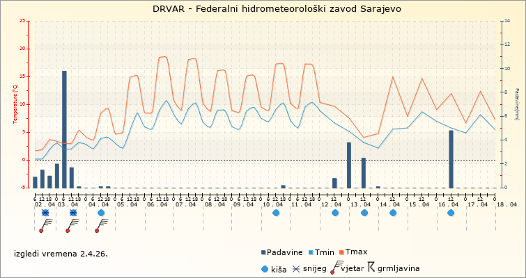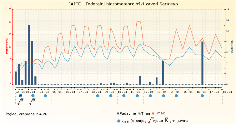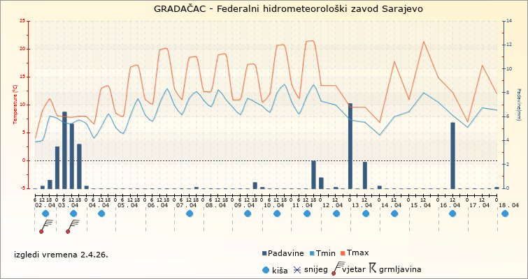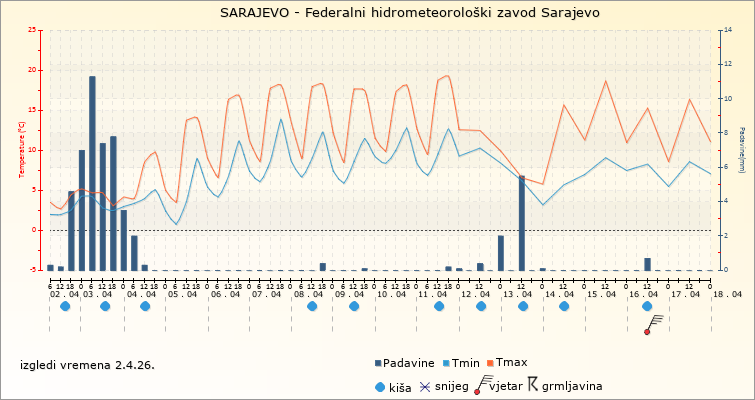 IZGLEDI VREMENA ZA SARAJEVO ZA PERIOD: od 2.4.2026. do 17.4.2026.