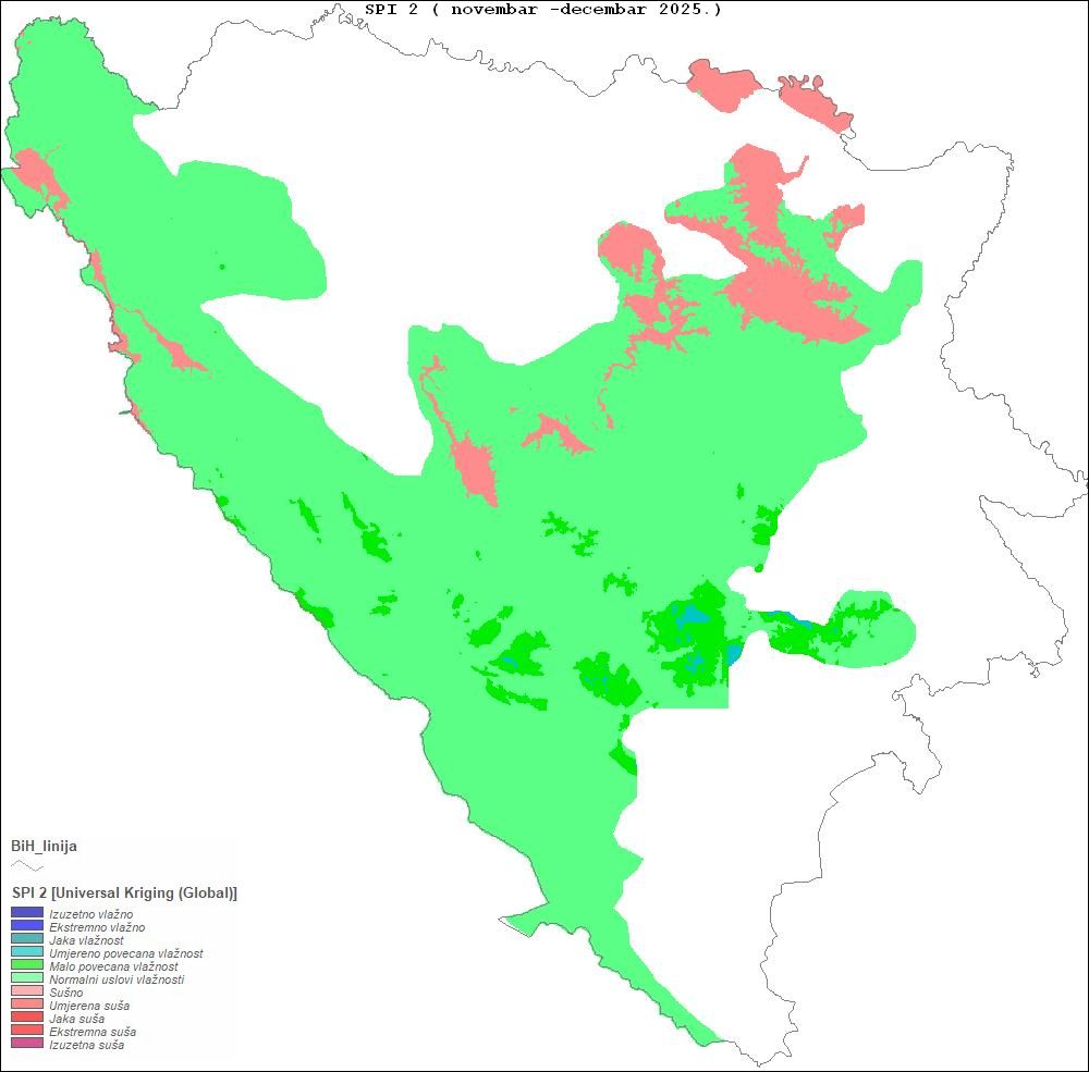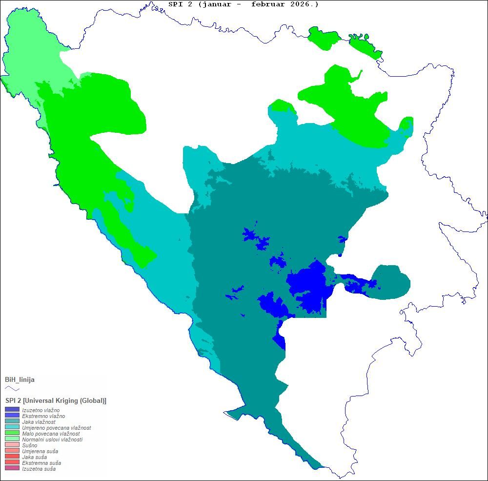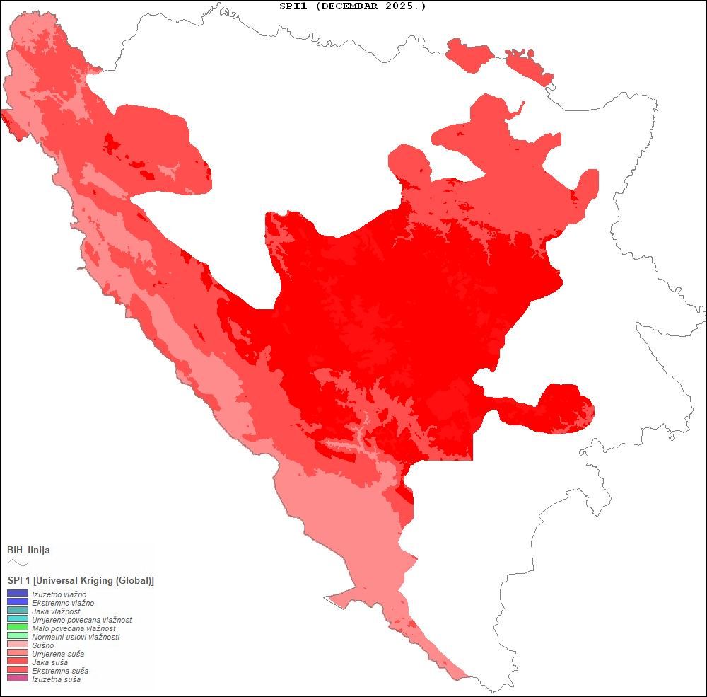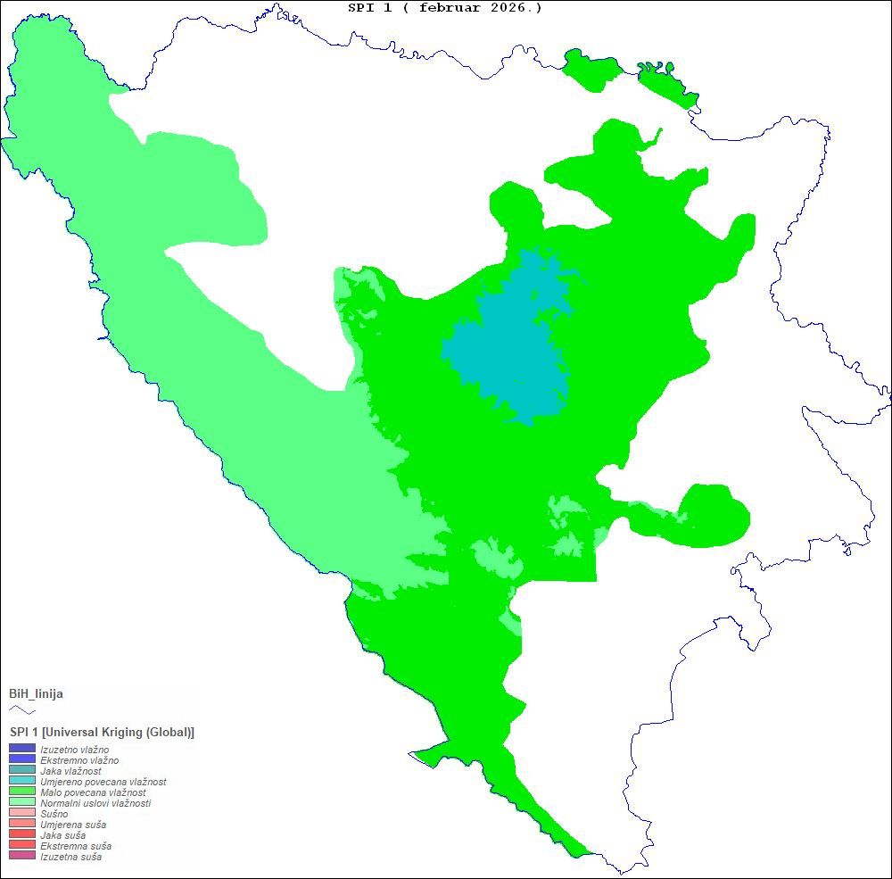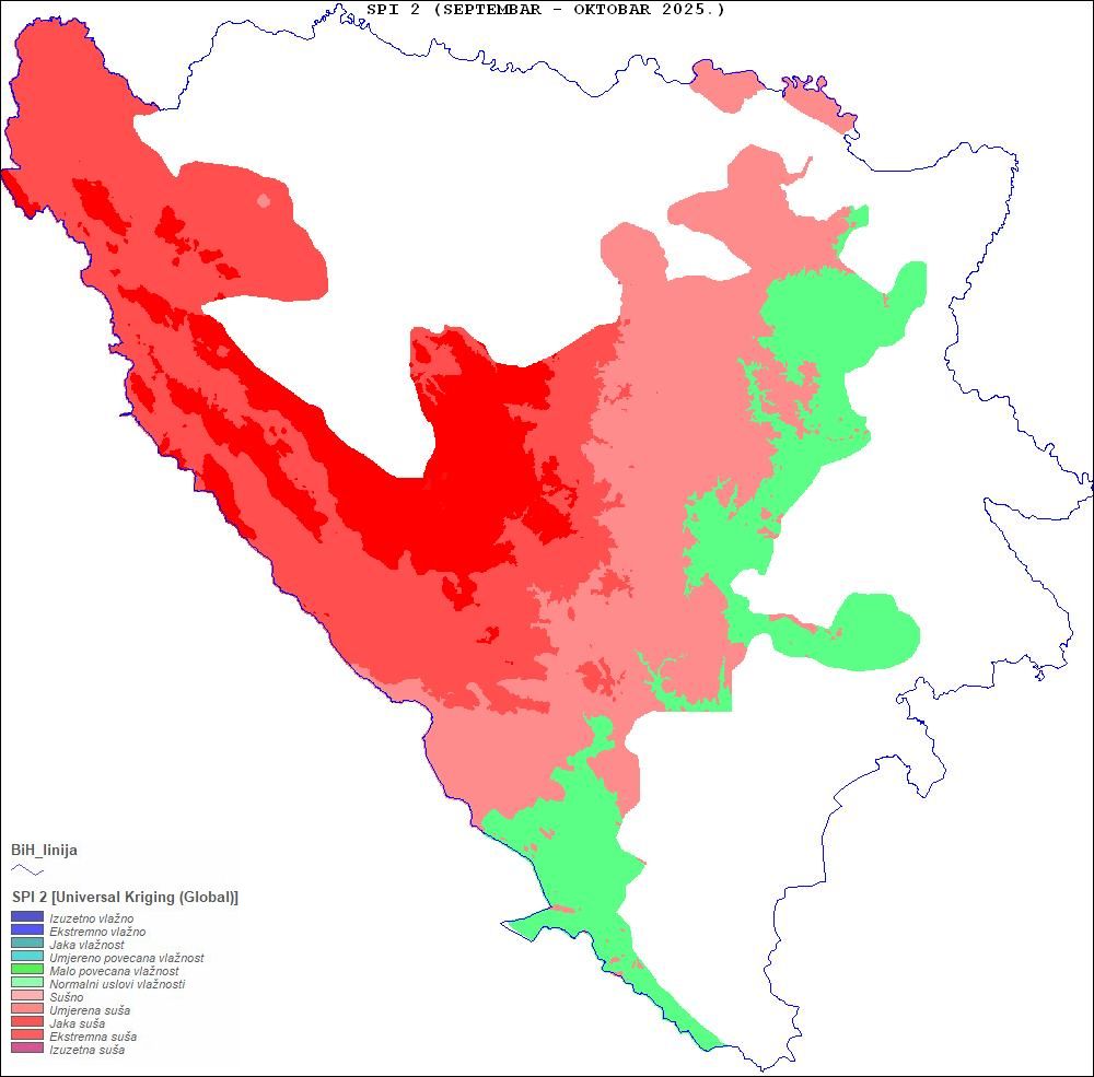 U Odsjeku za agrometeorologiju pri Sektoru primijenjene meteorologije FHMZ-a BiH, operativno praćenje suše se zasniva na proračunu Standardiziranog indeksa padavina (SPI) na osnovu padavina registrovanih u proteklih 30, 60 i 90 dana. Vrijednosti SPI iznad 0 određuju vlažne uvjete, a vrijednosti ispod 0 sušne uvjete.