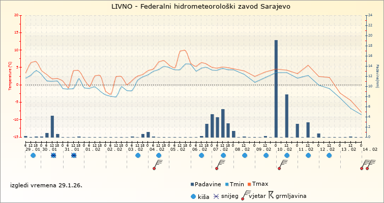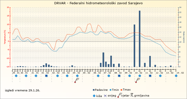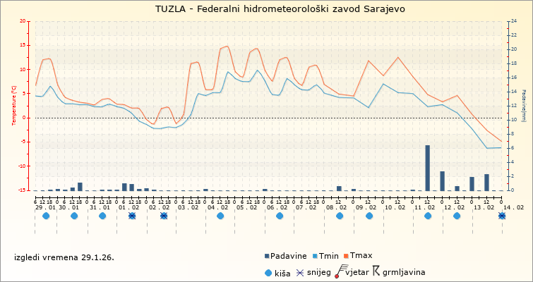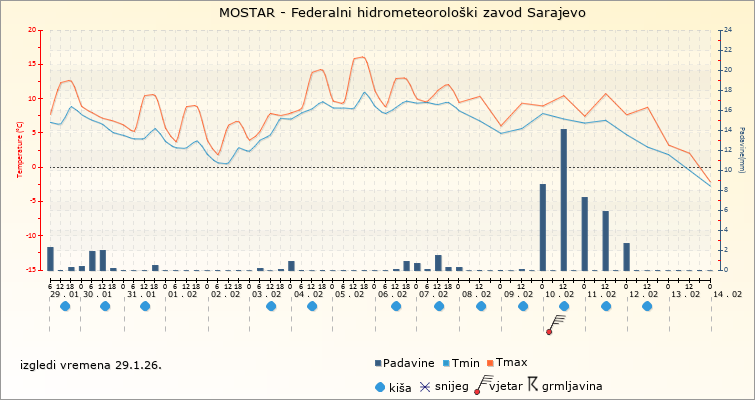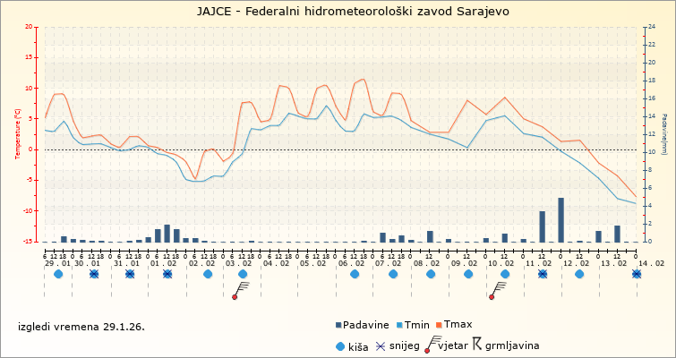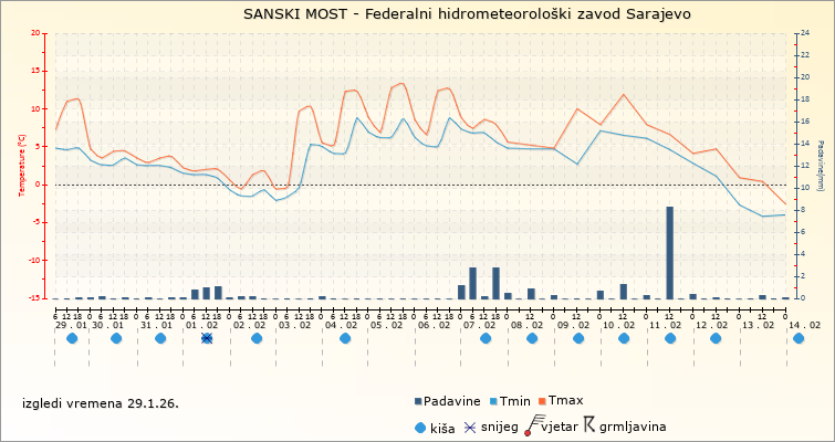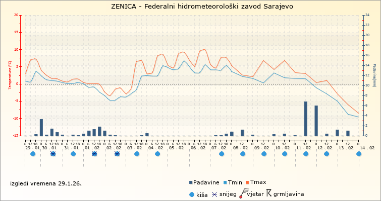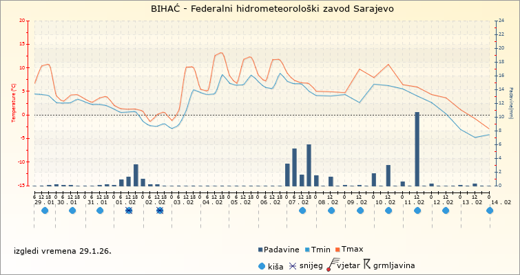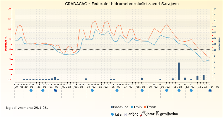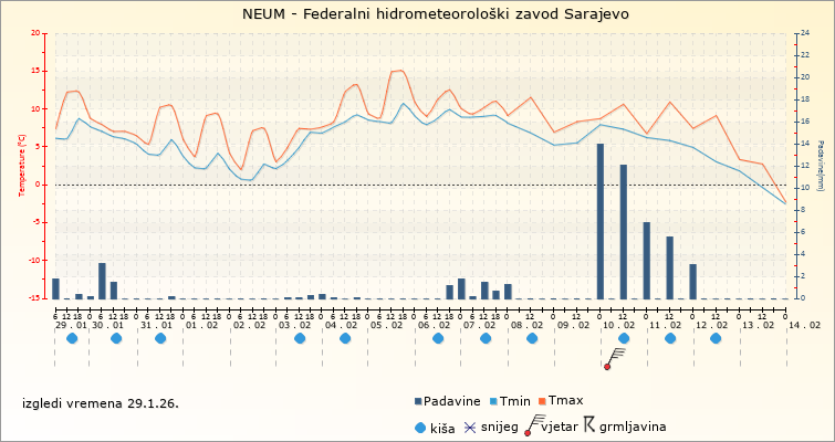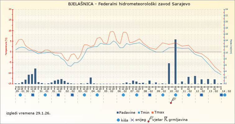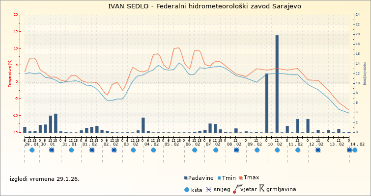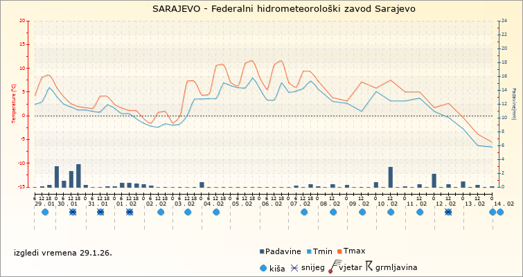 IZGLEDI VREMENA ZA SARAJEVO ZA PERIOD: od 29.1.2026. do 13.2.2026.